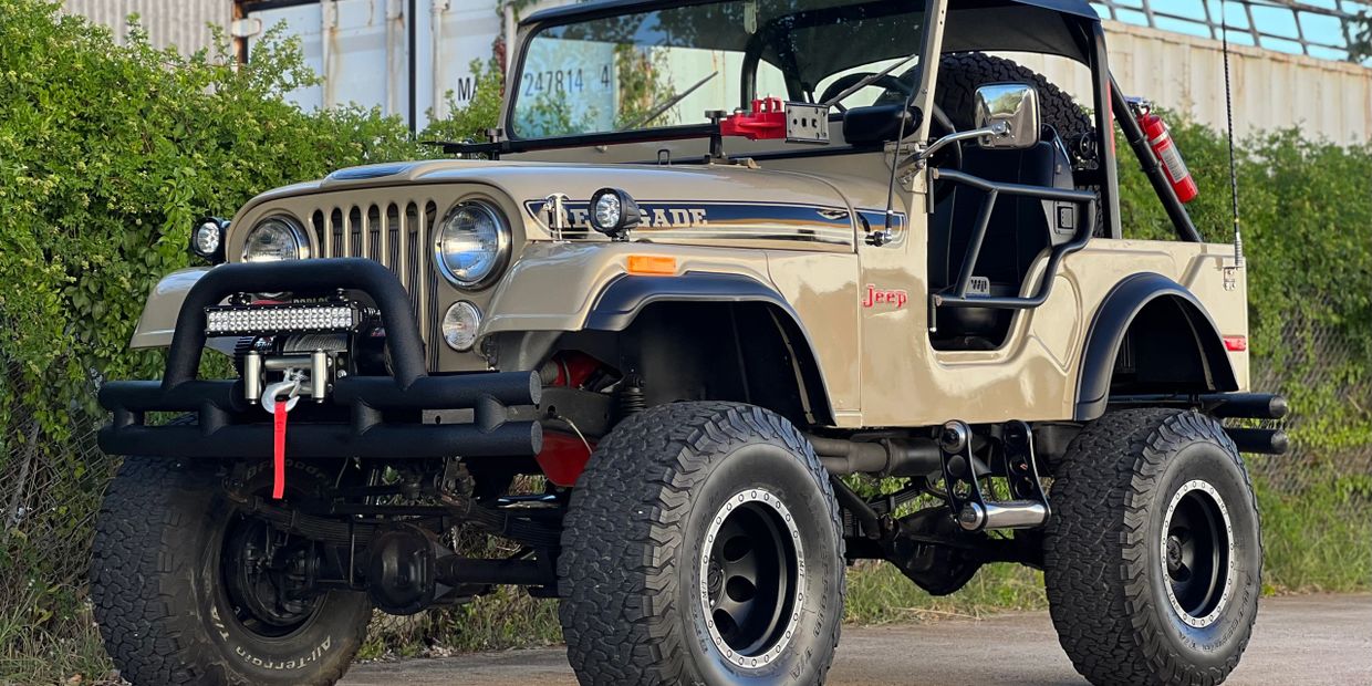 Bid2own is pleased to offer this 1982 Jeep CJ5 Laredo! This gorgeous CJ5 is a 2 owner Texas Jeep from new. The gentleman I acquired the Jeep from got it from his father. The blue Texas title that accompanies the Jeep was issued in 1993. The 82 CJ5 Laredo is a very rare Jeep! They had planned to discontinue the CJ5 in 1981 to make way for CJ7 production, however production on CJ5 did carry into 82 and a bit into 83. 82 was the last year you could get Laredo Package on a CJ5. Only 6k CJ5’s rolled off the assembly line in 82, compared to an average of 30-40k Jeeps per year in the years prior. What makes this Jeep even more rare is that it came painted black when new! Jeep preferred not to paint their vehicle’s black as it showed a lot of flaws in the body work and took them more time to make look good. This Jeep has a Chevrolet 350 V8 swap paired with a TH400 automatic transmission. The engine and trans were fully serviced recently with $5k in receipts in hand. It has an upgraded audio system with Bluetooth capabilities and has benefitted from a driver quality repaint in the last couple of years along with fresh Laredo livery from Phoenix Graphics. Available immediately for $22,995! For inquiries, Chris @ 713-256-1924 or chris@bid2ownwholesale.com