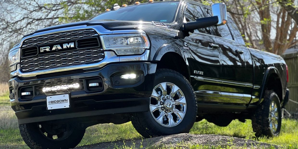 Bid2Own is pleased to offer this 2019 Ram 3500 Limited Mega Cab 4x4 with the 6.3ft bed! This Ram 3500 Limited is loaded with factory equipment including Heated and Cooled Seats, Surround View Cameras, Adaptive Cruise Control, WiFi, Cab Lights, Harmon Kardon Sound, Sunroof, Max Tow Package, 5th wheel hitch, Cargo Camera and much more. In addition it has been enhanced with some tasteful aftermarket upgrades including, Fox/BDS Lift, integrated LED Light Bar, Rear Air Suspension/Tow Bags, Power Running Boards, Train Horn and near new NITTO Terra Grapplers! This truck has a clean Carfax and comes complete with one key and books. Available immediately for $77,500! For inquiries, call or text Chris @ 785-BUY-ACAR!